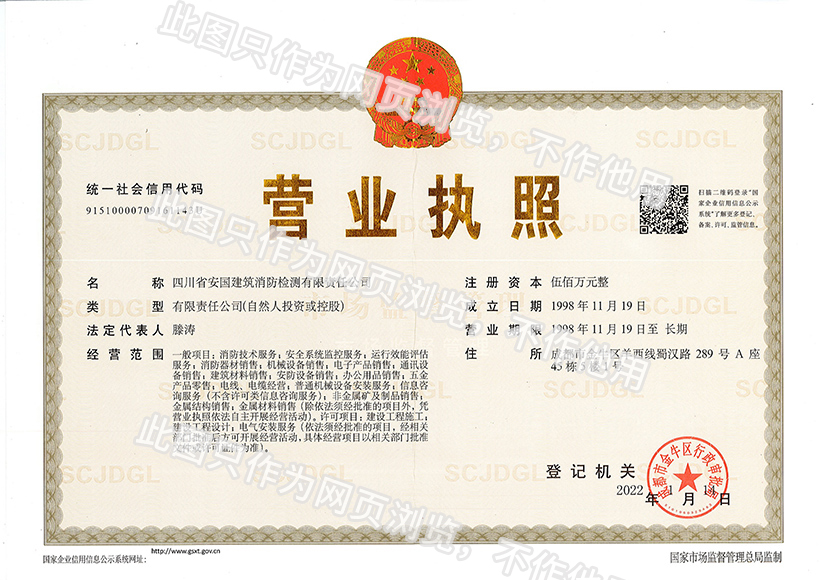 四川省安國建筑消防檢測(cè)有限責(zé)任公司,成立于1998年,經(jīng)四川省公安消防總隊(duì)批準(zhǔn),工商部門注冊(cè)的獨(dú)立法人單位。